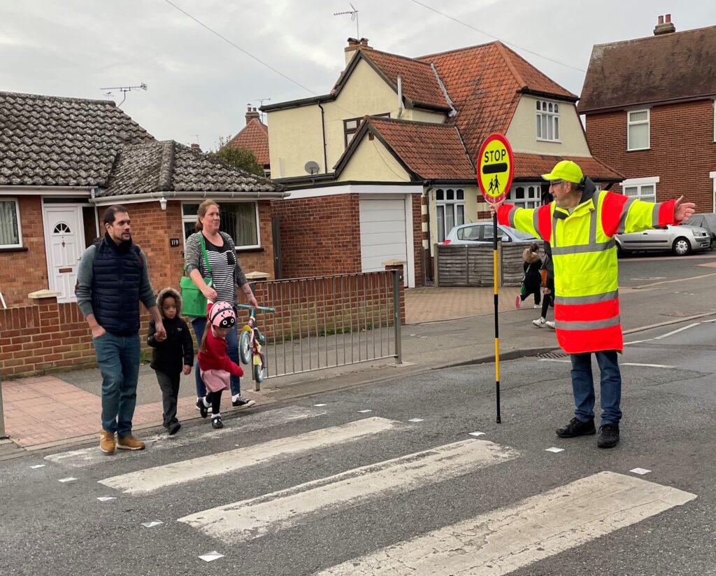 School Crossing Patrol Officers are employed by Suffolk County Council during term times to help children and adults cross the road in a safe way while they are on their journey to and from school. They are dedicated members of their community, who, no matter what the weather, provide a friendly greeting and a very valuable service.